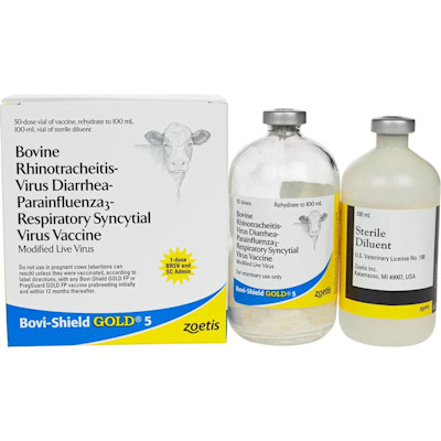 Prevents respiratory disease caused by infectious bovine rhinotracheitis (IBR) virus and viremia caused by bovine viral diarrhea (BVD) Types 1 and 2 viruses, and aids in preventing respiratory disease caused by BVD Types 1 and 2 viruses, parainfluenza 3 (PI3) virus and bovine respiratory syncytial virus (BRSV) when administered 1 and 2 viruses, parainfluenza 3 (PI3) virus and bovine respiratory syncytial virus (BRSV) when administeredby the subcutaneous route of administration . When administered intramuscularly, BOVI-SHIELD GOLD® 5 aids in preventing respiratory disease caused by IBR virus, BVD Types 1 and 2 viruses, PI3 virus and BRSV . USDA approved efficacy against BVD Type 1b.